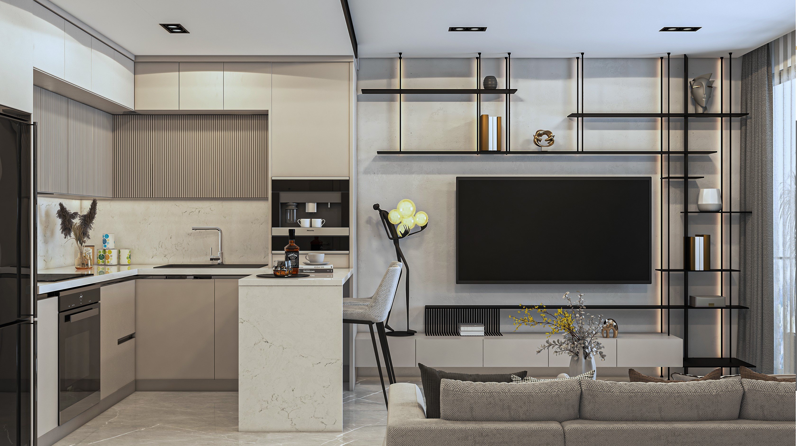 1+1 daireler bir yatak odası, açık mutfak ve oturma alanından oluşmaktadır. Dairelerimiz 48 m² ile 59 m² arasında değişmektedir. Ayrıca, 5,5 m² ile 24 m² arasında değişen balkonları veya 17 m² ile 38 m² arasında değişen özel jakuzili teras seçeneği mevcuttur.